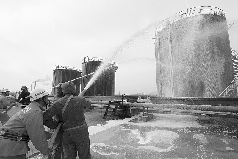 800立方米丙烯腈儲罐突發(fā)“泄漏”,一旦發(fā)生環(huán)境污染事故,將波及周邊大片生活區(qū),情況十分危急……昨天上午9時許,市環(huán)保局主辦的環(huán)境突發(fā)事件應(yīng)急演練在安徽天潤化學(xué)工業(yè)股份有限公司儲罐區(qū)舉行?!翱?!有人中毒倒地,罐體隨時有起火可能,請搶險救援小組、醫(yī)療救護小組、消防滅火小組支援!”伴隨著急促而有序的通話,企業(yè)負(fù)責(zé)人命令立即啟動專項環(huán)境應(yīng)急預(yù)案?!笆鹿省爆F(xiàn)場,兩名穿戴防護服、身背呼吸機的救援隊員沖鋒在前,成功關(guān)閉了發(fā)生泄漏的3號罐的外排閥門,并對損壞罐體進行搶修,防止更多化學(xué)氣體外泄;現(xiàn)場醫(yī)療人員抬起擔(dān)架沖進儲罐區(qū),抬送“傷員”到安全地帶,組織員工向上風(fēng)口有序撤離轉(zhuǎn)移;全副武裝的消防隊員手持水槍,噴涌而出的泡沫將3號罐體團團包裹,罐內(nèi)化學(xué)物質(zhì)得到降溫、稀釋。