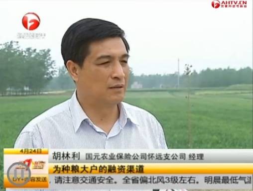 安徽電視臺經(jīng)濟頻道分別于2012年11月3日和2013年4月24日兩次對國元農(nóng)業(yè)保險懷遠支公司服務(wù)三農(nóng)的創(chuàng)新融資模式進行了宣傳報道。懷遠支公司積極開展政策性農(nóng)業(yè)保險保單質(zhì)押貸款業(yè)務(wù),拓寬了農(nóng)村融資渠道,助推農(nóng)業(yè)規(guī)模化、產(chǎn)業(yè)化的發(fā)展。報道展示了企業(yè)的良好形象和服務(wù)三農(nóng)取得的優(yōu)秀成績。