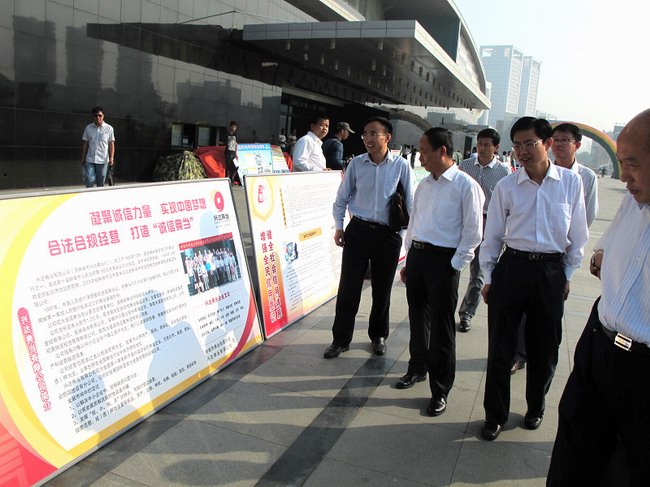 10月12日上午,在淮河文化廣場上,興達(dá)典當(dāng)有限公司作為蚌埠市典當(dāng)拍賣協(xié)會會長單位應(yīng)邀參加了由市商務(wù)局牽頭,聯(lián)合市委宣傳部、市文明辦、市物價局、市經(jīng)信委等17個部門共同舉辦的以“凝聚誠信力量,實(shí)現(xiàn)中國夢想”為主題的誠信興商大型宣傳活動,市人大、市政協(xié)及市商務(wù)局領(lǐng)導(dǎo)現(xiàn)場巡視了各單位宣傳展板并與在場人員熱烈交流。