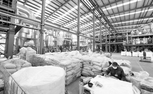12月16日,安徽天潤化工員工在生產(chǎn)線上精心作業(yè)。今年以來,該企業(yè)積極參與國際市場競爭,產(chǎn)品遠(yuǎn)銷30多個(gè)國家和地區(qū)。今年以來,該企業(yè)出口總值再創(chuàng)新高,聚丙烯酰胺產(chǎn)品出口 9100噸,比去年增長48%,創(chuàng)匯1000多萬美元。
