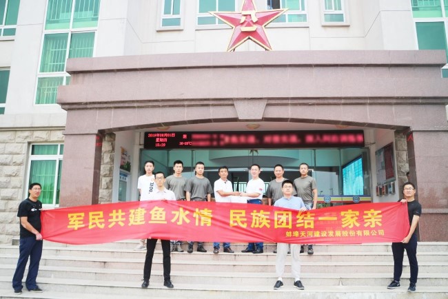 為慶祝中國人民解放軍建軍92周年,2019年8月1日下午,蚌埠投資集團(tuán)項目管理有限公司、蚌埠天河建設(shè)發(fā)展股份有限公司、蚌埠投資集團(tuán)房管經(jīng)營有限公司、蚌埠農(nóng)業(yè)科技投資有限公司一行20余人共赴空軍某部開展“八一”建軍節(jié)共建座談會暨雙擁慰問活動。
